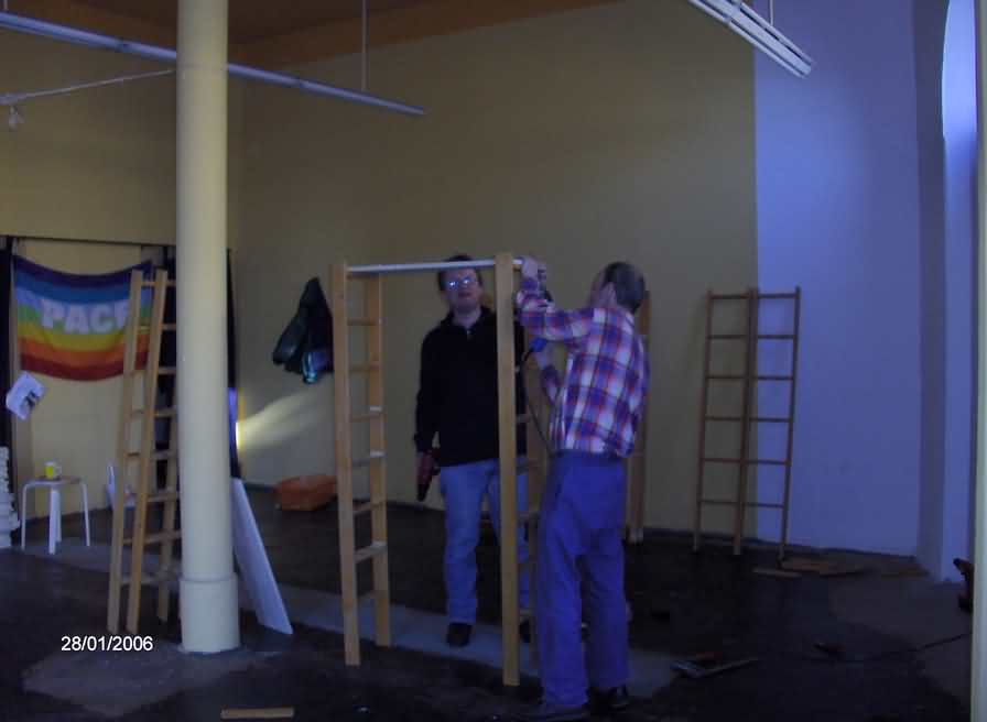 Matthias und Lutz helfen beim Aufarbeiten der alten Regale